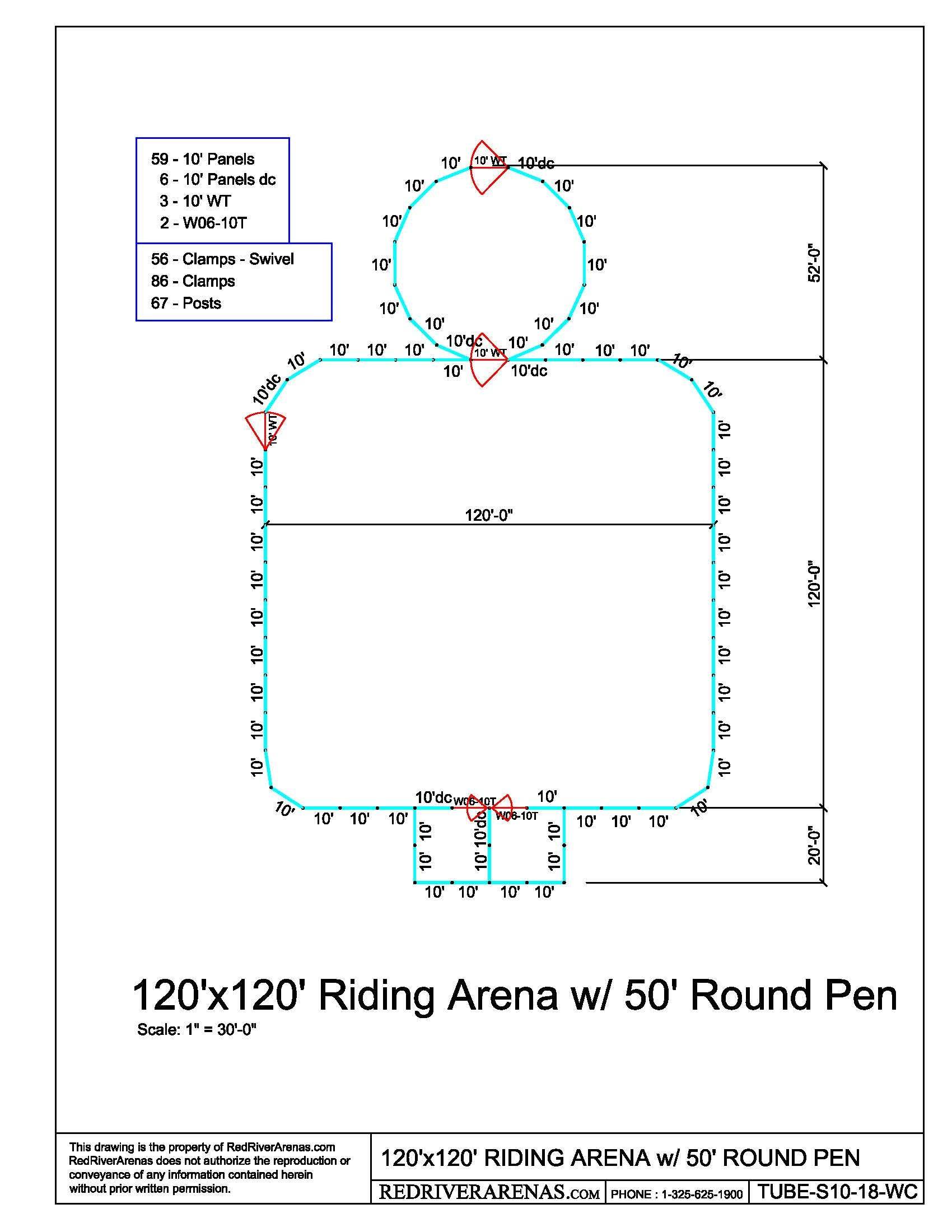 120' x 120' RIDING ARENA with 50' ROUND PEN (PH10 Panel)