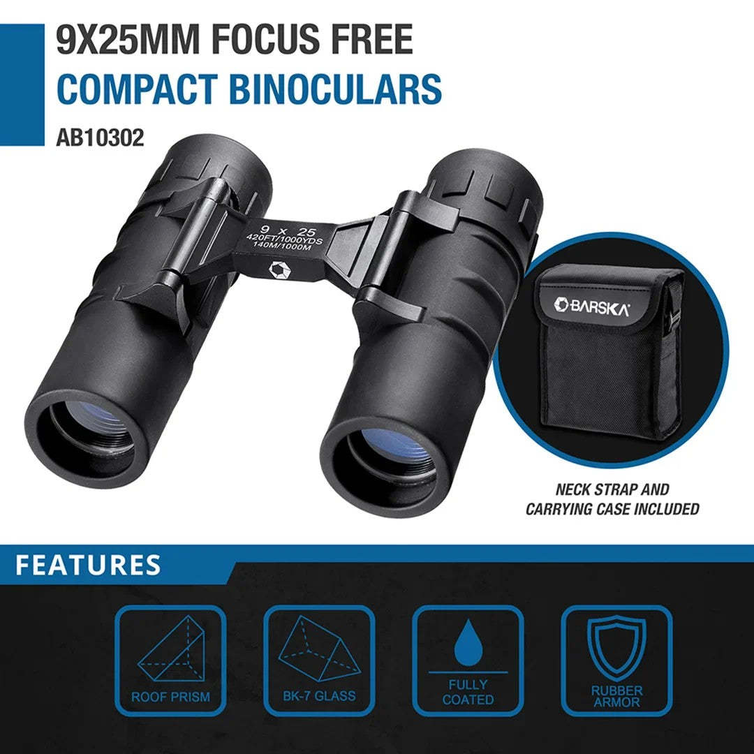 BARSKA Focus Free 9 X 25 Compact Binoculars